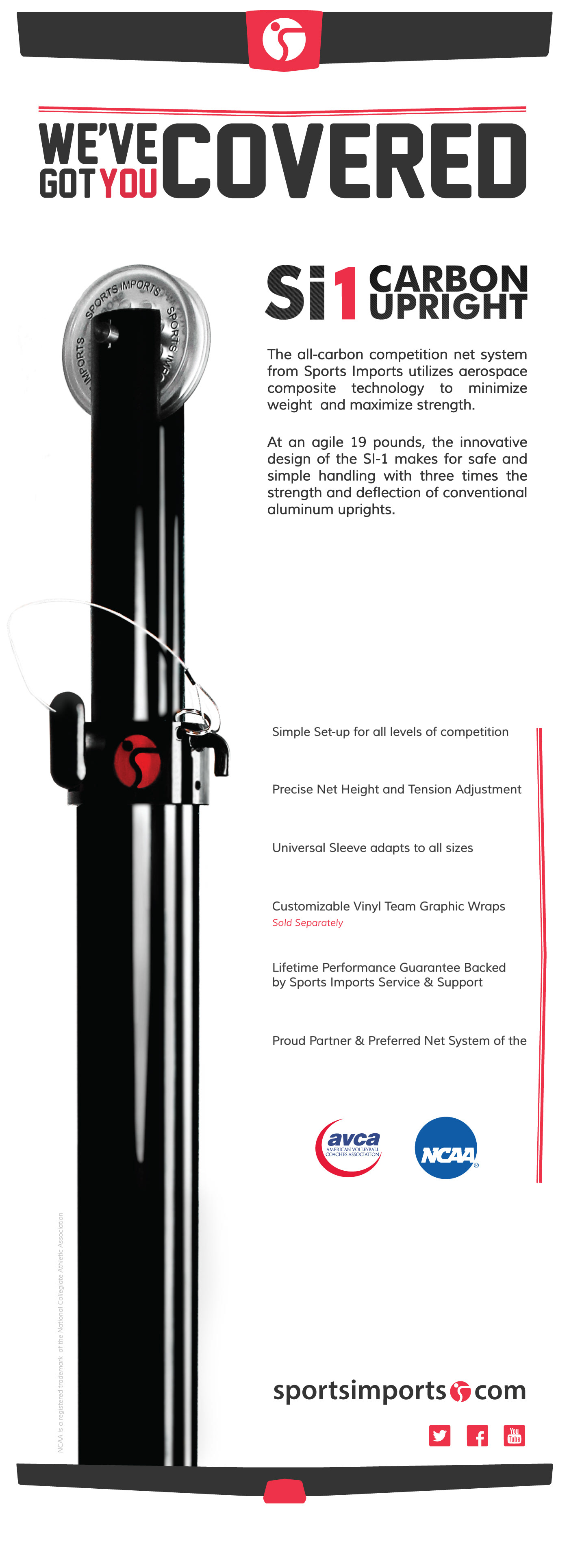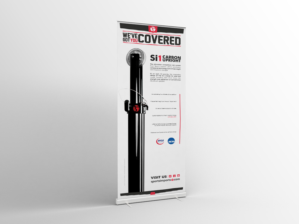 The main design objective of this (84" x 31") banner advertisement for Sports Imports® was to showcase their new Si1™ Carbon Upright volleyball net system in larger-than-life-size.